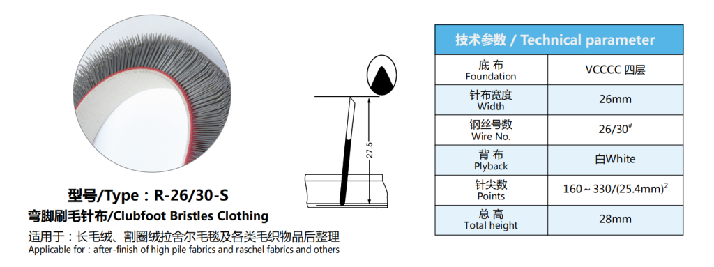 R-26/30-S applicable for after-finish of high pile fabrics and raschel fabrics and others